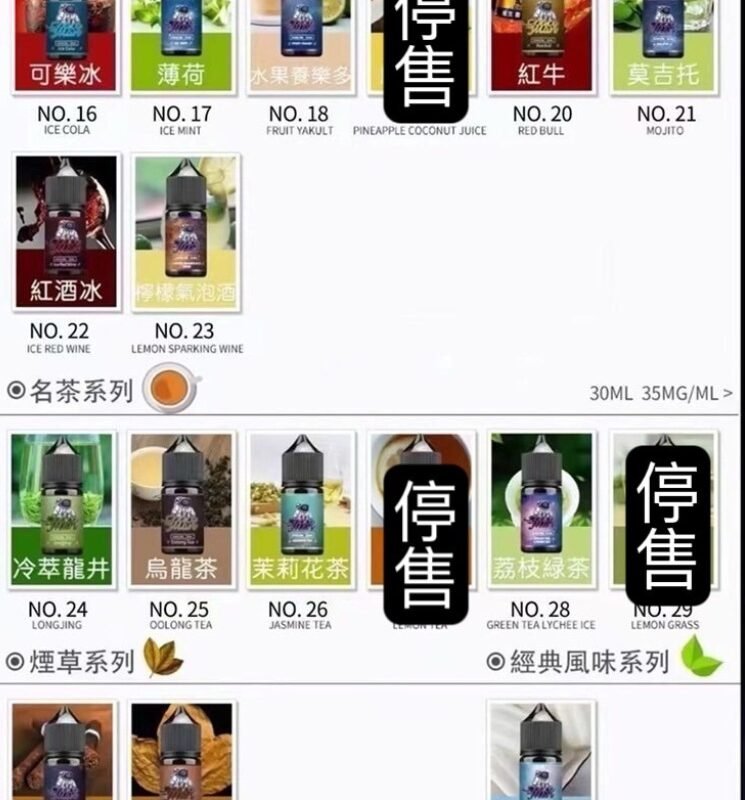 | 口味 | 龍井茶, 香檳酒, 清茶百香果, 芒果冰, 北極洋, 葡萄, 寶礦力, 紅牛, 麥香紅茶, 草莓, 冰糖雪梨, 鐵觀音, 水蜜桃, 哈密瓜, 茉莉花綠茶, 山竹, 極地冰泉, 黃油煙草, 紅心芭樂, 檸檬紅茶, 葡萄蘋果 |