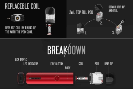 - ✔️ 可替換線圈設計: 再也不用丟掉整個煙彈,只需更換線圈,更環保更實惠!