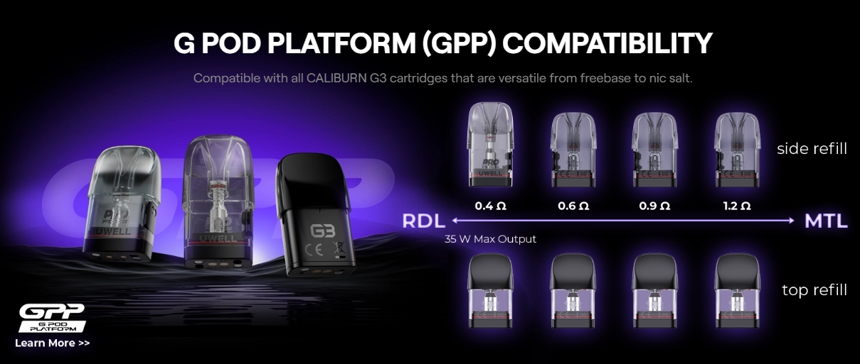 體驗電子煙的未來!Caliburn G3 Pro搭載全螢幕 UI,讓您一目了然地查看所有電子煙資訊。搭配全新的 3ML – 0.4Ω G3 唱頭,提供無與倫比的風味和可調 35W 最大輸出,帶給您視覺與口感的雙重享受。😎💨